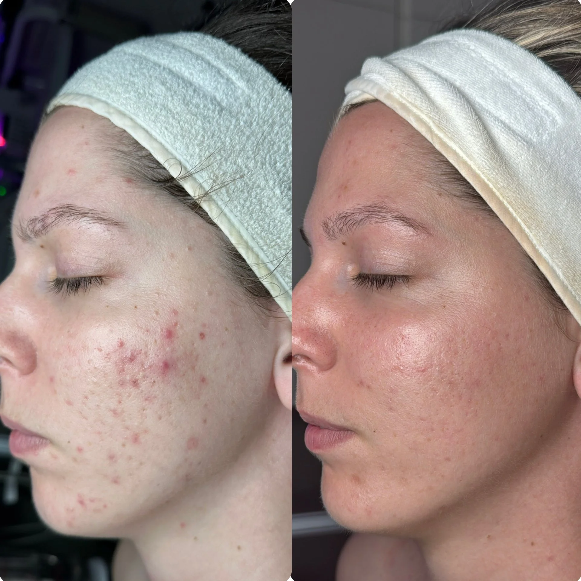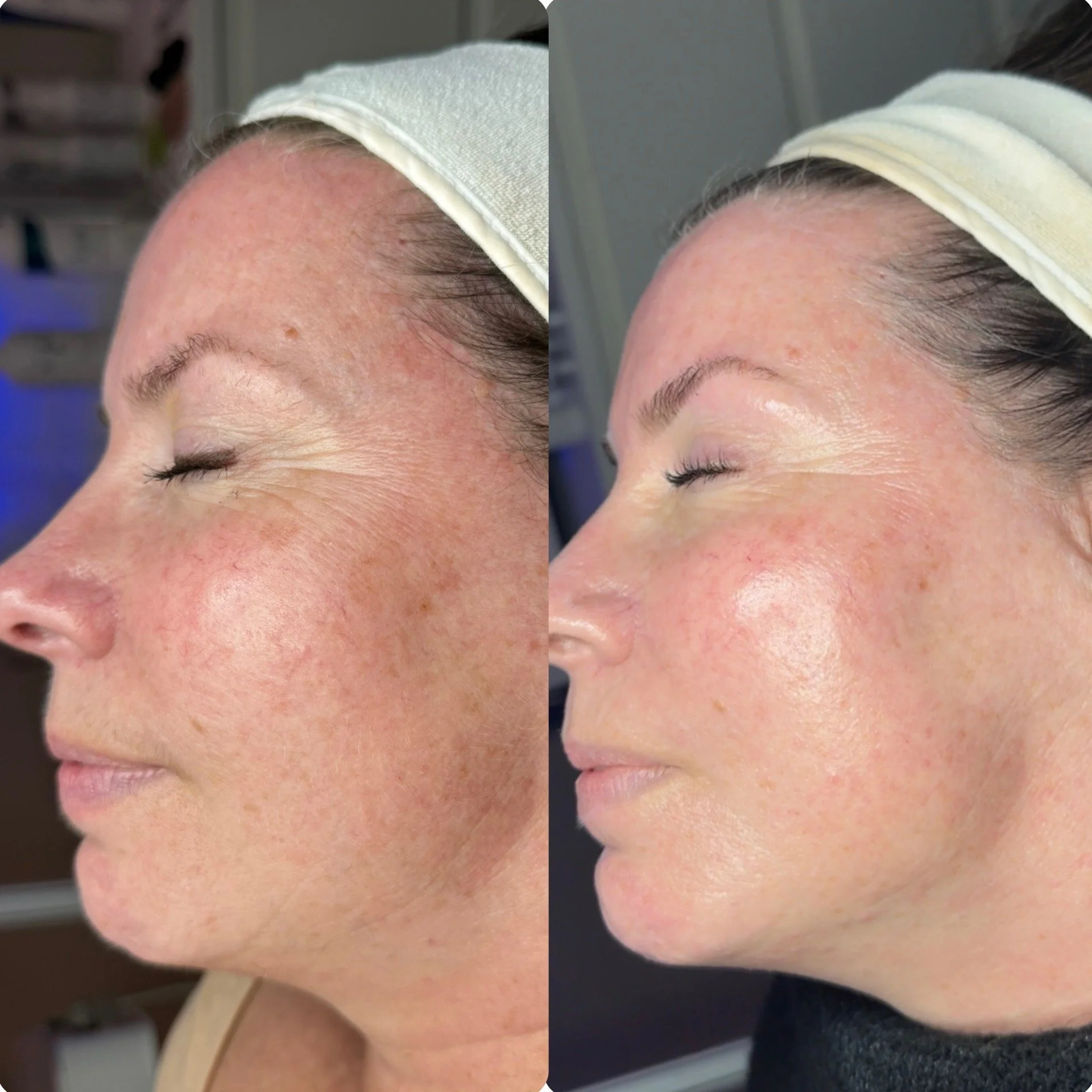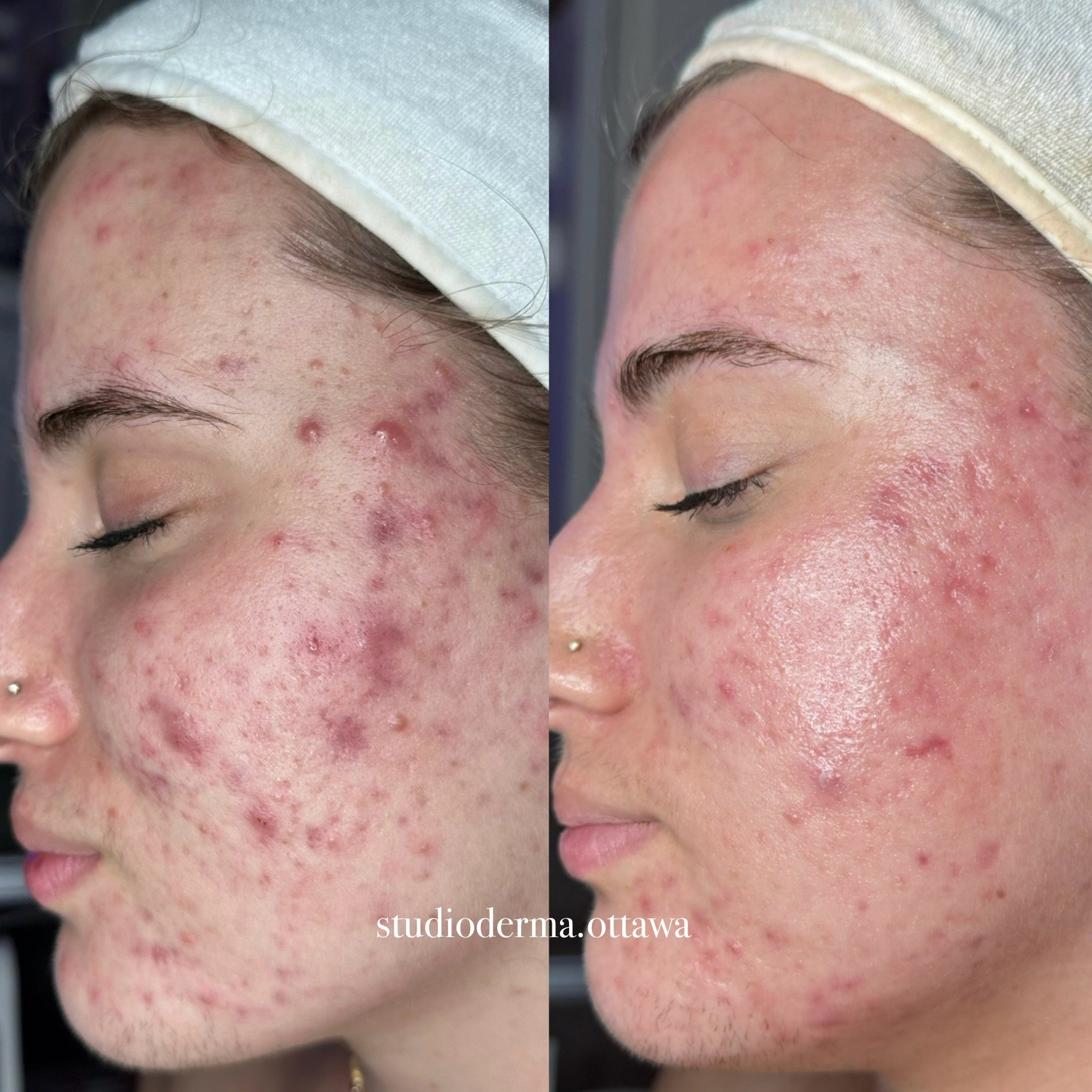 At STUDIODERMA, we celebrate the unique journey of each individual client towards their skin goals. These before and after photos show the transformative potential of the Custom Correction facial treatment alongside the use of a Lira Clinical homecare regimen, and mild lifestyle changes.